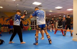Muay Thai – arta luptei și a rezistenței pentru juniori și adulți. Clasele noastre includ antrenamente de grup pline de energie și ședințe private 1:1, care dezvoltă forța, agilitatea, tehnica de auto-apărare și încrederea în sine, într-un mediu prietenos și motivant.”